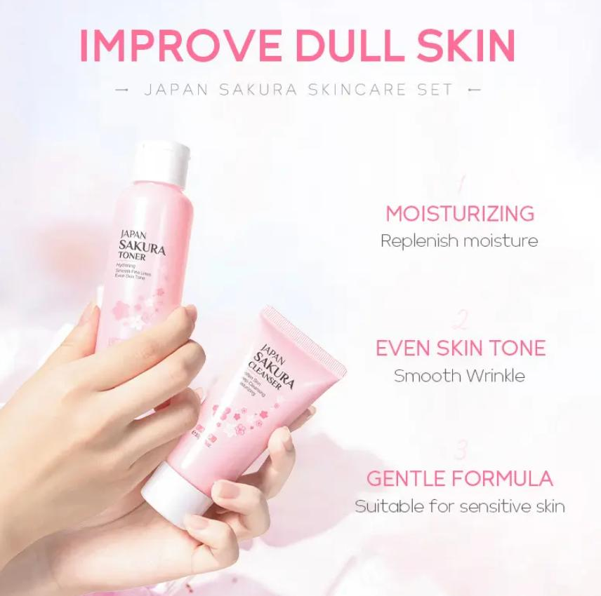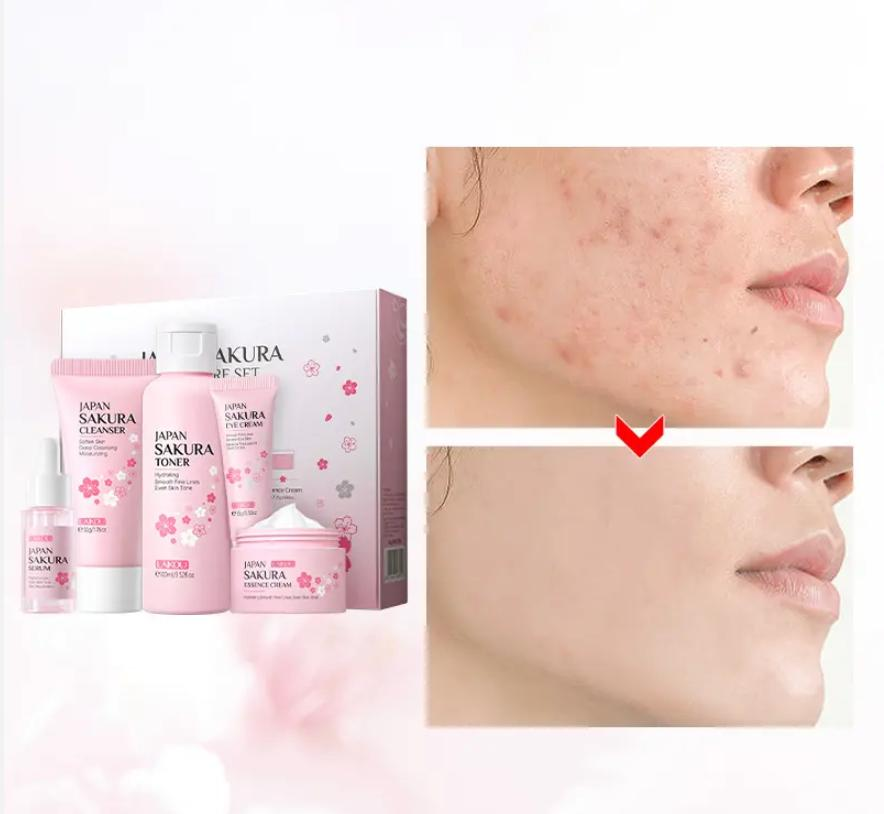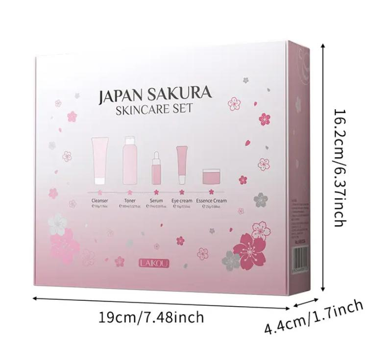 Set ingrijire faciala, LAKOU, Japan Sakura, Cleanser 50 g, Toner 100 ml, Ser 17 ml, Crema de ochi 15 g, Crema de fata 25 g